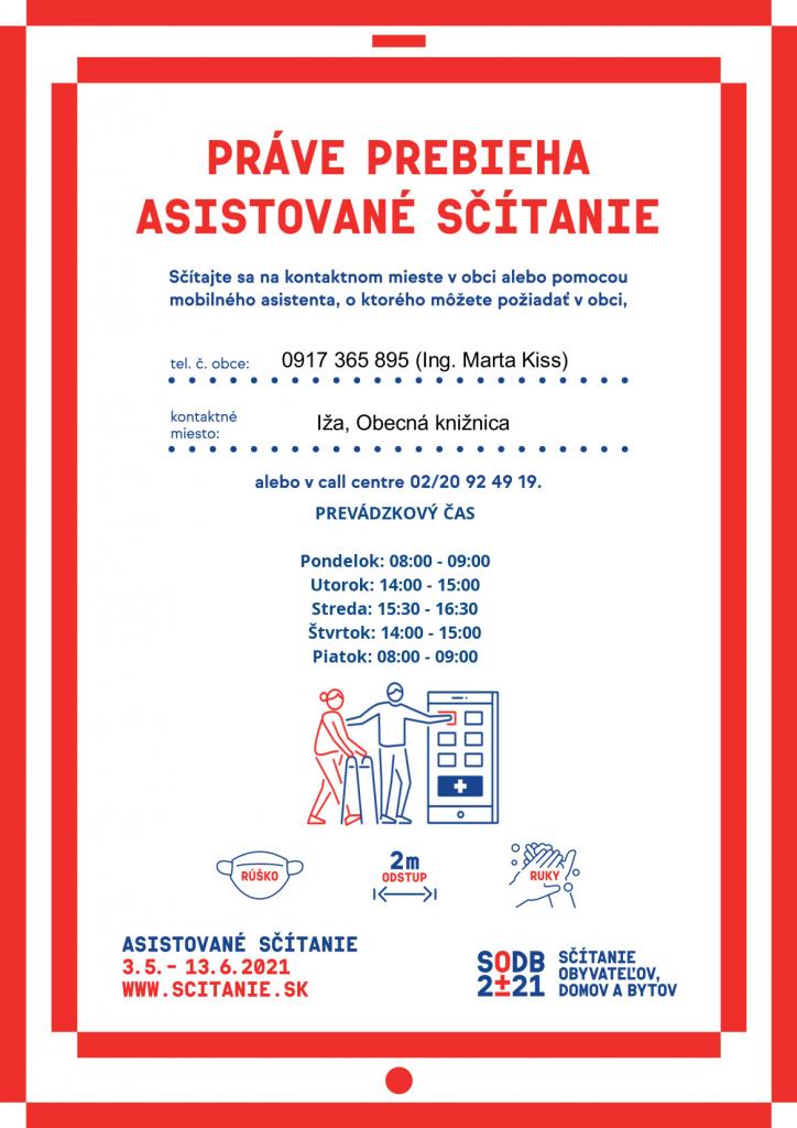 Od 3. mája 2021 prebieha v trvaní šiestich týždňov aj v našej obci asistované sčítanie obyvateľov, počas ktorého si budú môcť splniť svoju zákonnú povinnosť a zúčastniť sa sčítania za pomoci jedného stacionárneho a dvoch mobilných asistentov všetky osoby, ktoré sa z nejakého dôvodu nesčítali sami v predchádzajúcom období elektronického sčítania.